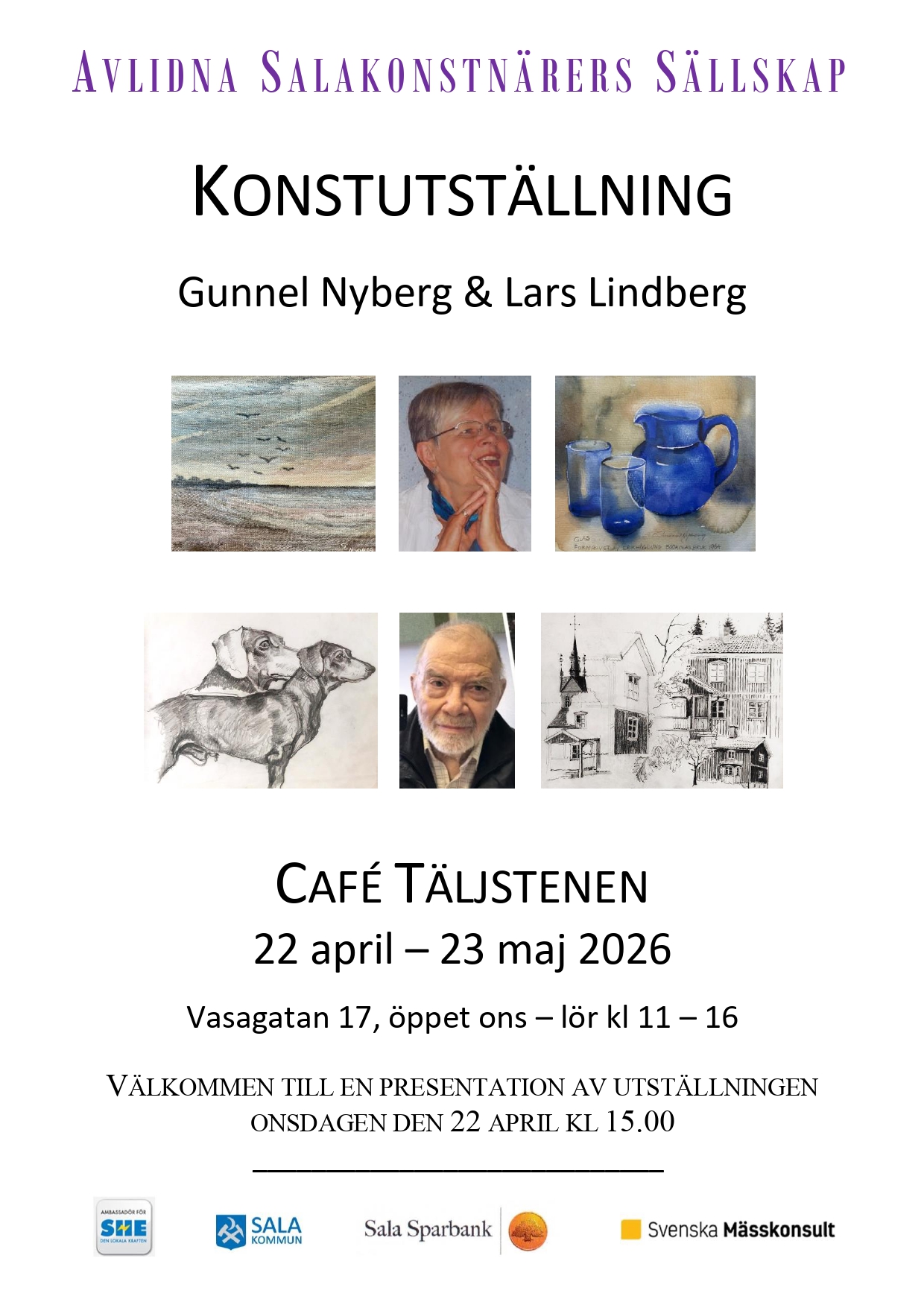 Senast upplagda utställningar i Café Täljstenen är Maj-Britt Norman & Hans Fagerström, Drottning K & Drottning Kristina (Cameleonterna), Drottning Kristina (Salamässan), Sommarutställningarna (Café Täljstenen & Kristina kyrka), Drottning Kristina (Konstmästargården, Sala Silvergruva), Carl Kjellin (Väsby Kungsgård), Vårsalong 2024 – Drottning Kristina (Täljstenen & Kristina kyrka) m.fl.